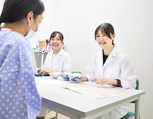 管理栄養士をより身近に感じていただけるよう、また、栄養指導や栄養相談を通して患者さんが長期的に見て管理ができるよう、疾患に応じた支援を行っています。