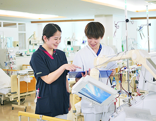 当院では、病棟担当制を導入しており、特に急性期の患者さんについてはタイムリーな情報を得ることができ、栄養療法のプランニングの提案をはじめ、食事形態や内容の調整など状態に応じたきめ細やかな対応を行っています。専門職として多職種と連携しながら情報を共有し、患者さんの栄養状態の維持・改善に努めています。