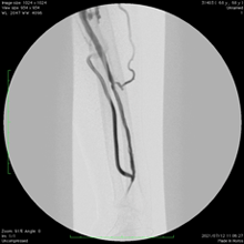 自己血管シャント狭窄を繰り返し3ヶ月ごとに標準のバルーン拡張術(PTA)を行っていましたが、薬剤コーティングバルーンを併用することで6ヶ月も再狭窄なく透析が可能でした。