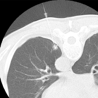 代表的な疾患では肺腫瘍に対するCTガイド下生検での組織診断、肺動脈脈瘻(肺動静脈奇形)では手術と同等である金属コイル塞栓術を施行しています。当院では呼吸器センターと共同で検査・治療を行っています。