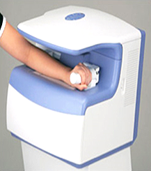手首の骨の密度を測定し、骨粗鬆症の発見・予防を行います。短時間で検査を行えます。